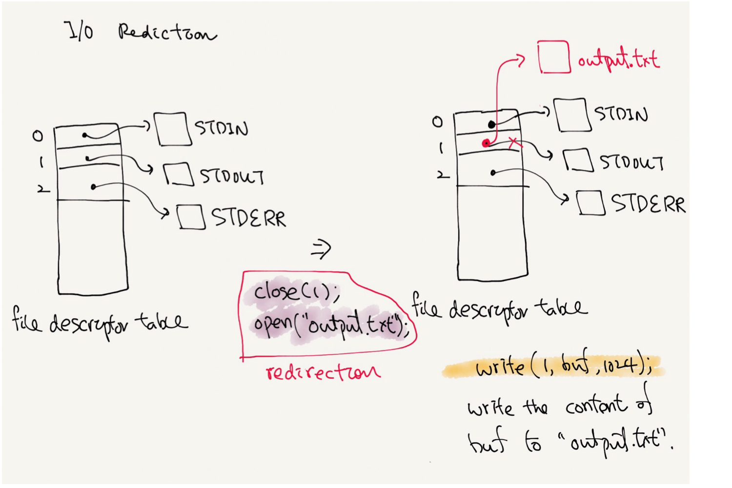 File descriptor의 0번째 index에는 STDIN이 1번째 index에는 STDOUT이 2번째 index에는 STDERR이 들어간다.