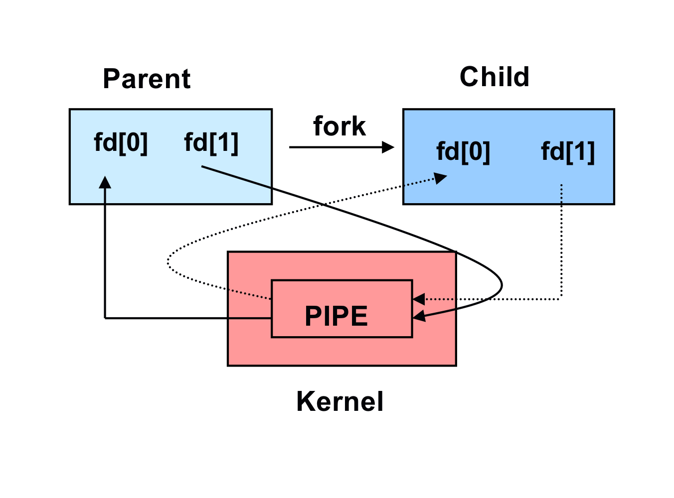 read(fd[0],buffer,BUFSIZE); //자식에게 서 온 값을 받는다.