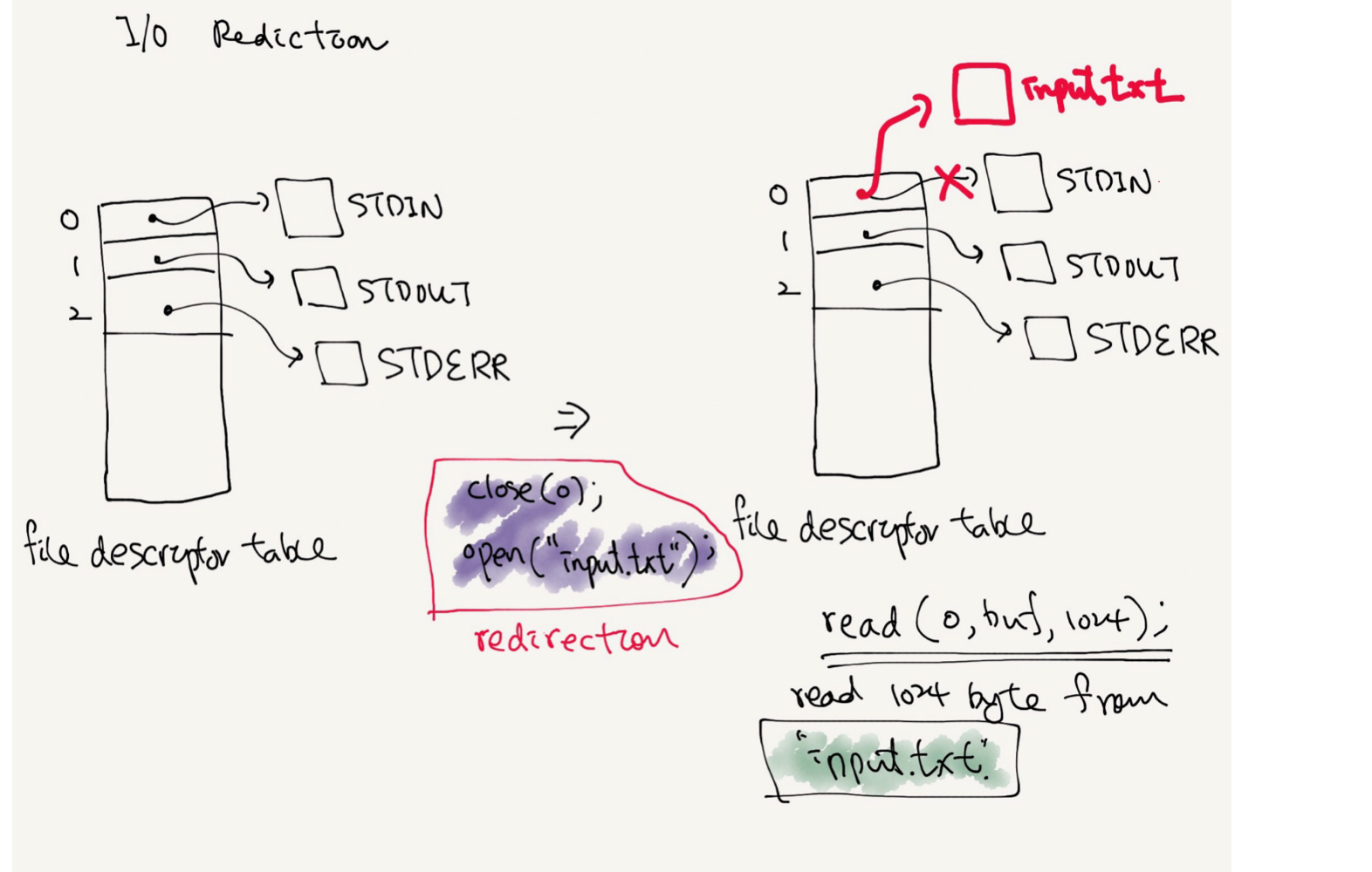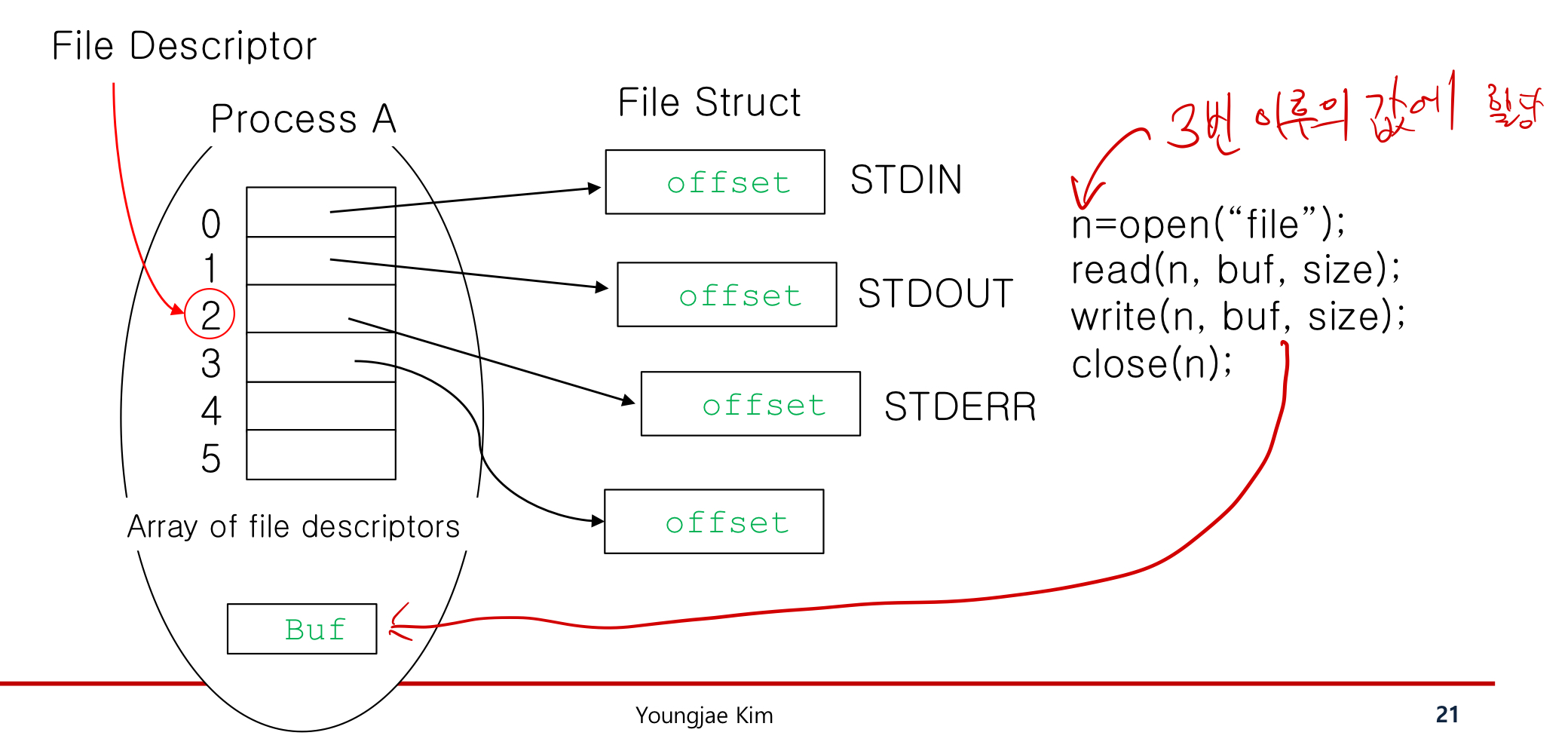 따라서 n=open("file")과 같은 명령어는 3번부터 할당 되게 된다.