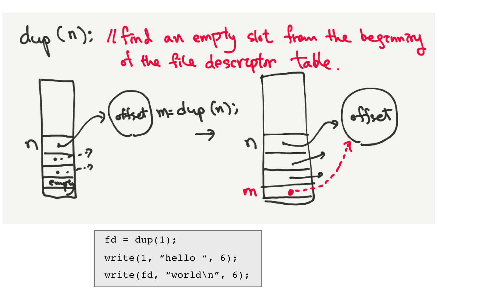 dup()는 filedescriptor table에서 비어있는 곳을 찾아준다.