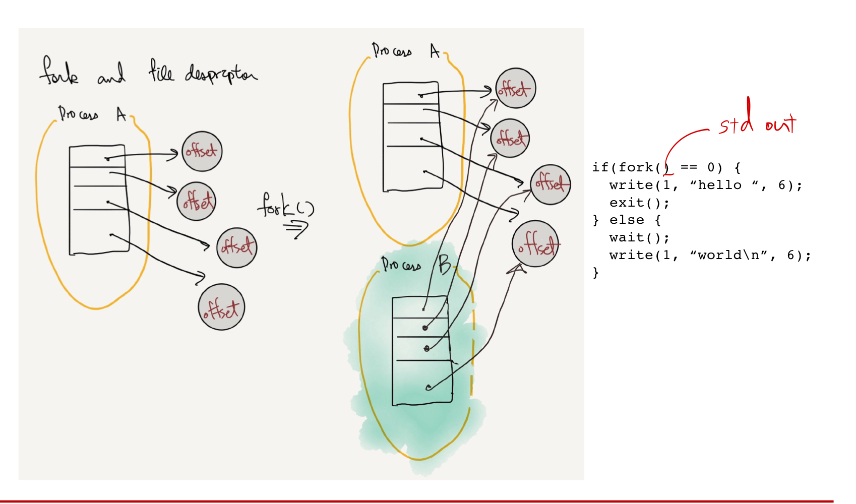 3.fork() - parent의 file descriptor table을 복사하여 child process에 넘겨준다.