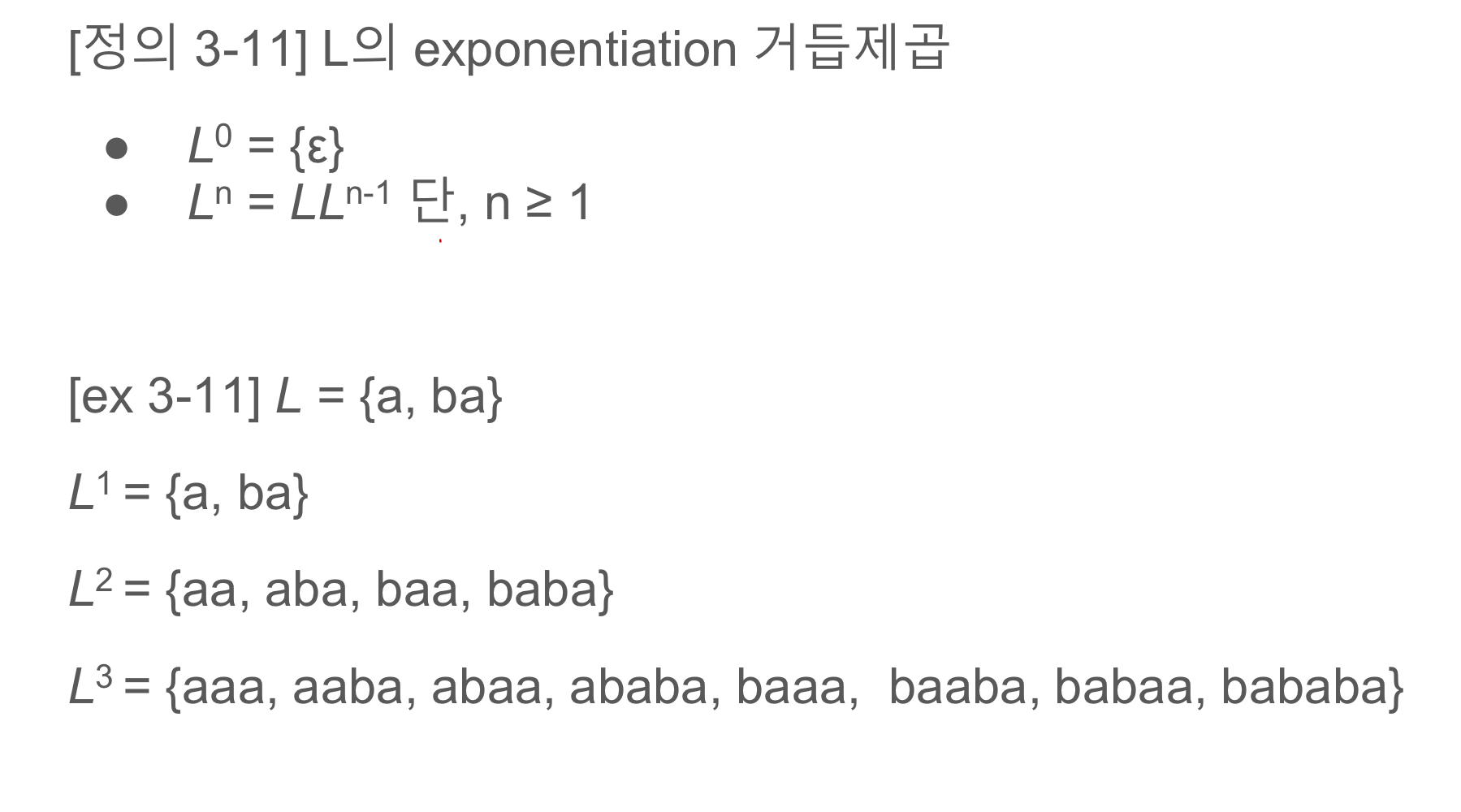 Exponentiation of language