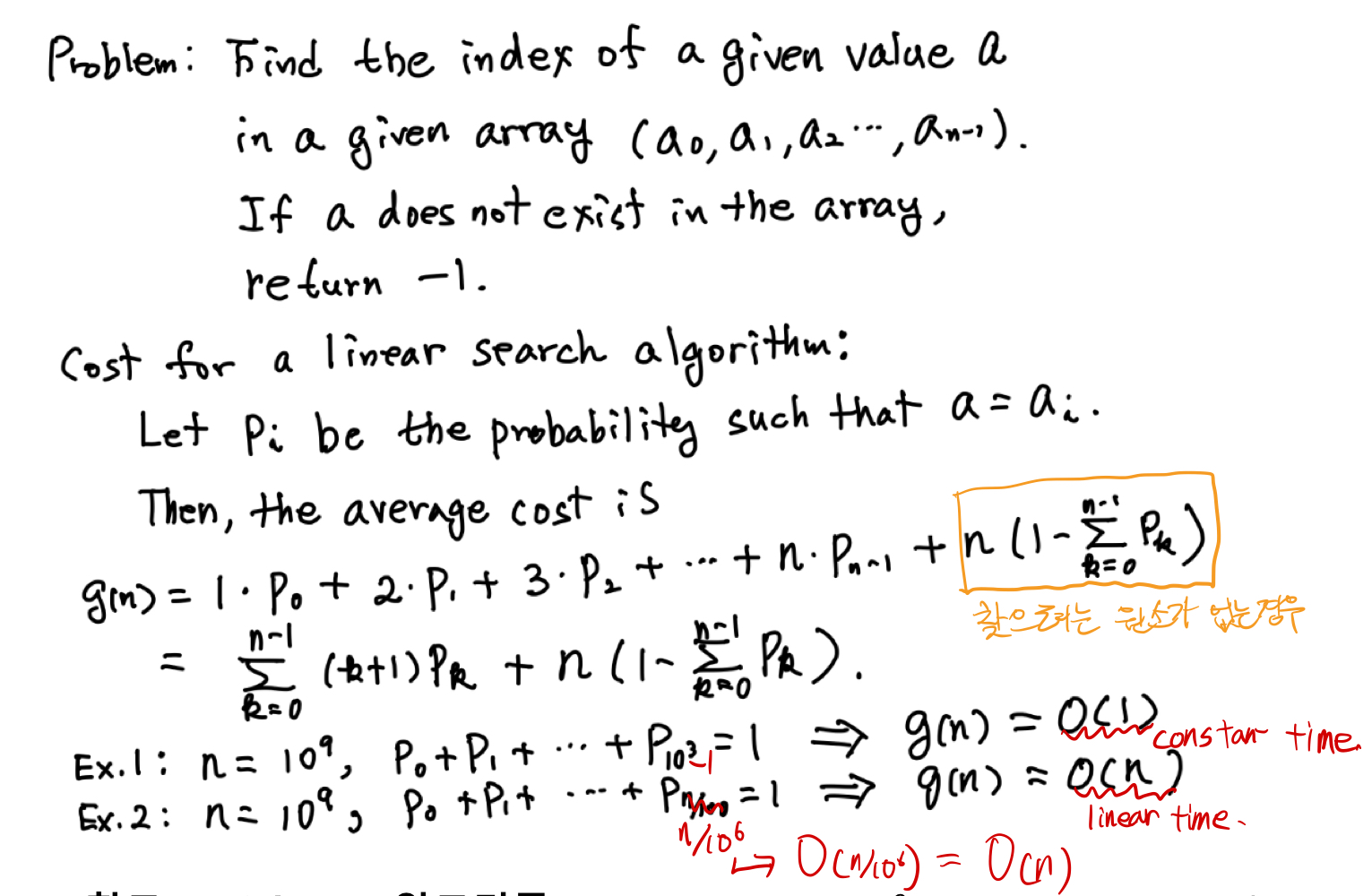 g(n)은 이해하였으니 넘어가도록 하고 밑에 ex를 보면 ex1은 g(n)이 n에 종속되지 않기 때문에 O(1)이고