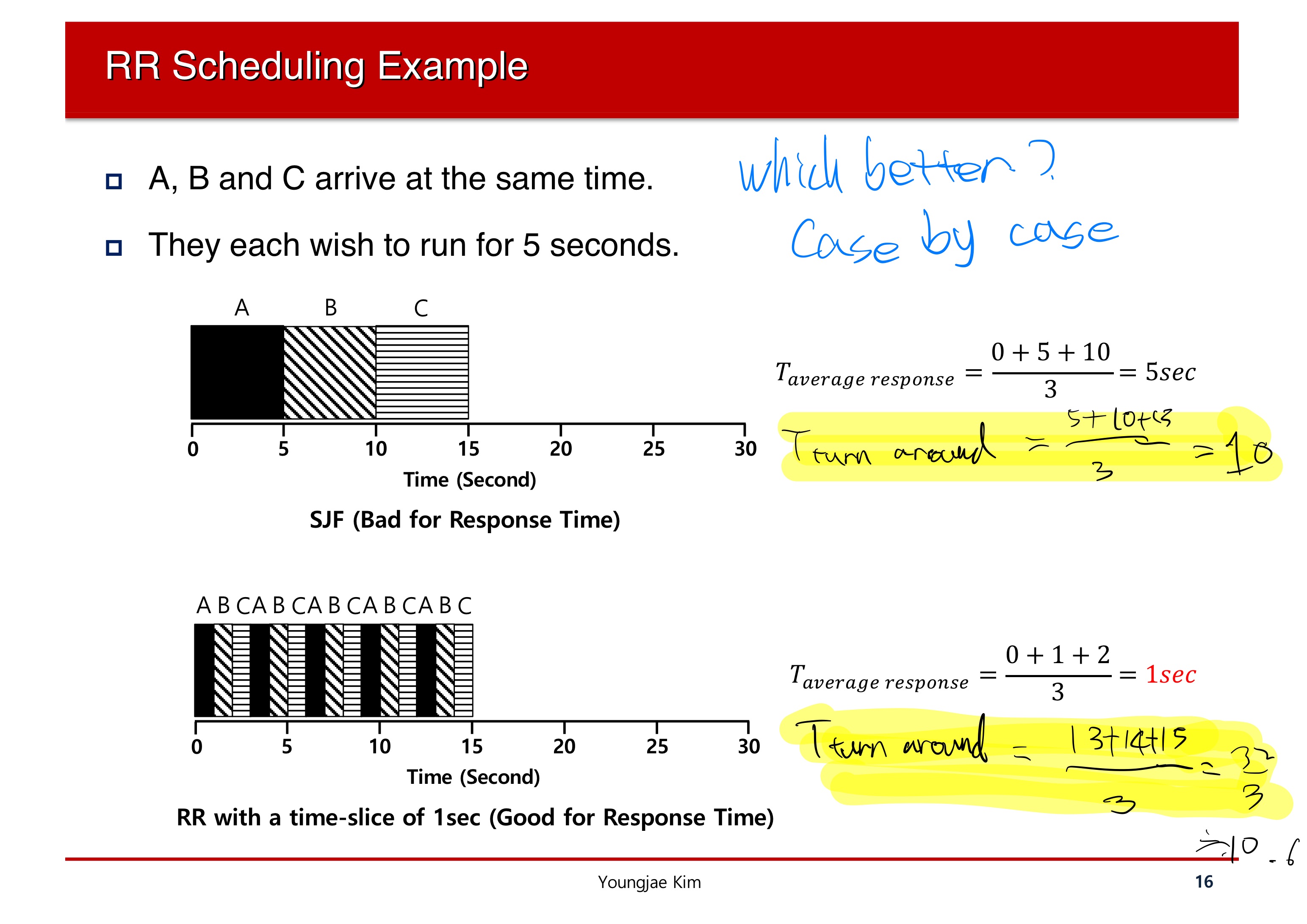 time slice를 작게하면 response time은 좋아지겠지만 context switching하는데 비용이 크게 늘어날 것이다.