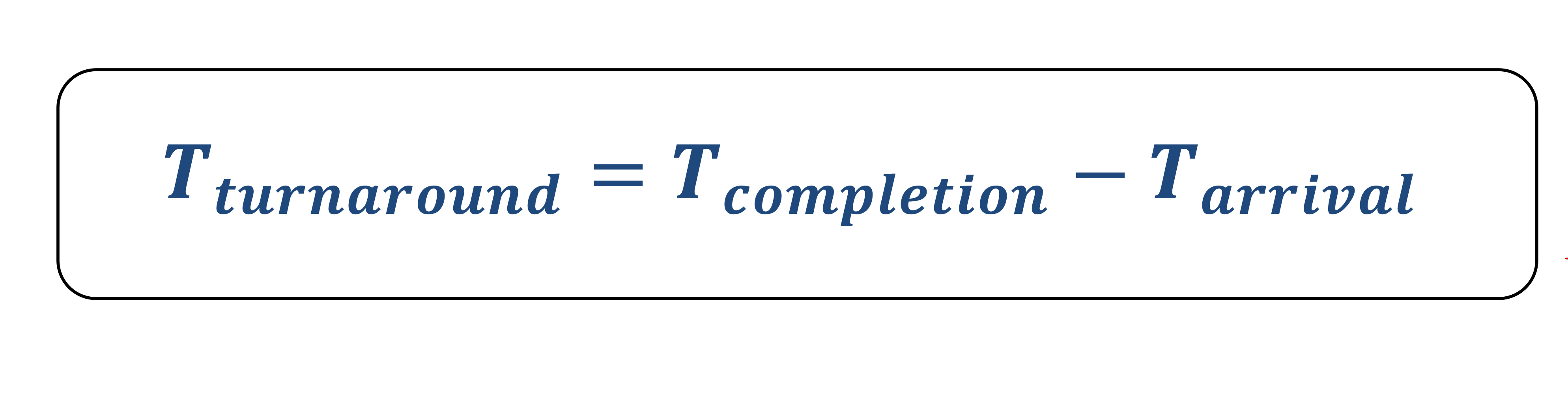 Scheduling Metrics에는 Performance Metric과 Fairness Metric이 있다. 참고로 밑에 예시들은 I/O input이 없는 경우이다.