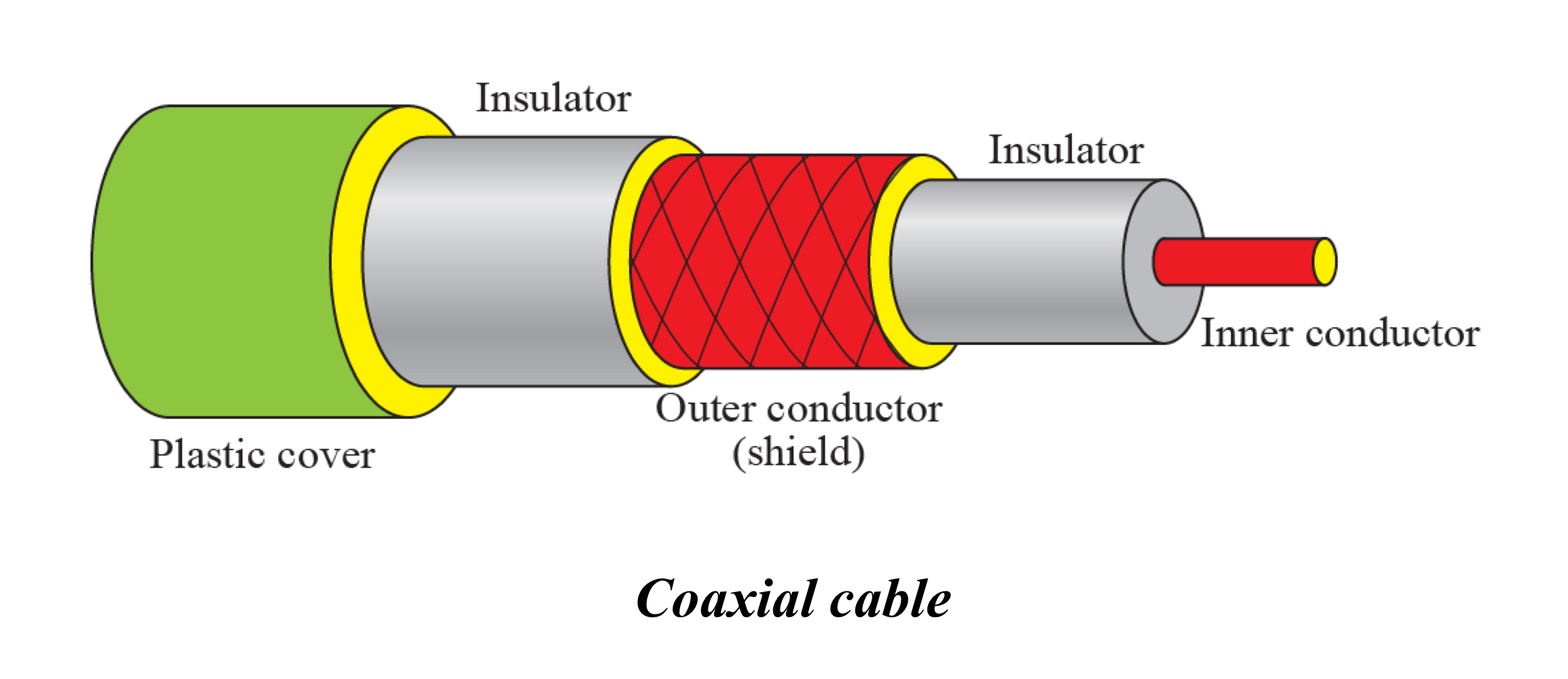 Coaxial Cable는 보통 Twisted-Pair Cable보다 높은 frequency를 가진 신호를 옮긴다. Coaxial Cable은 한 가지 center core conductor로 이루어져 있다.