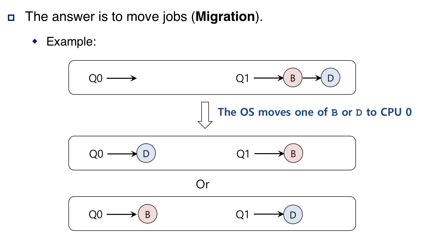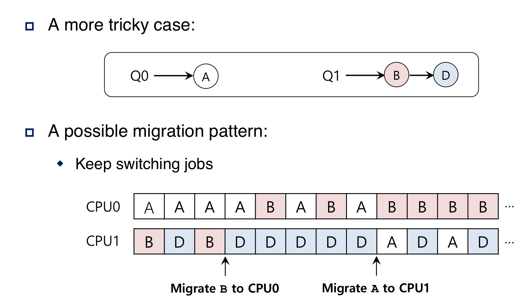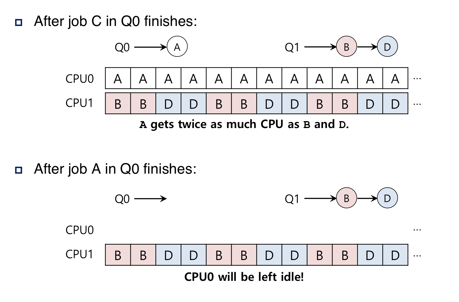 위와 같이 Q0에는 job이 할당되지 않아 CPU 0이 idle한 경우가 발생할 수도 있다.