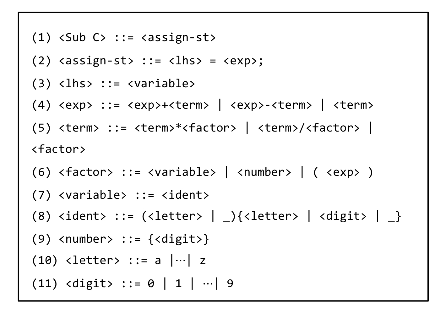 1. 문법에서 사용하는 토큰/패턴을 찾아서 토큰표를 만든다.