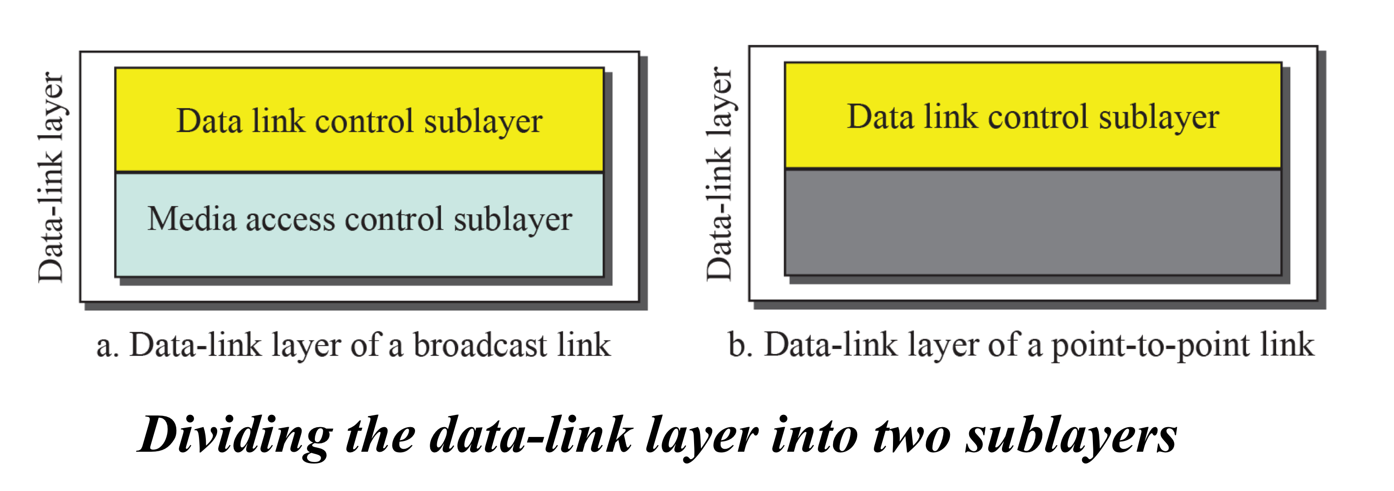 우리는 data-link layer을 두 가지 sublayer : data link control(DLC)와 media access control(MAC)로 나눌 수 있다.